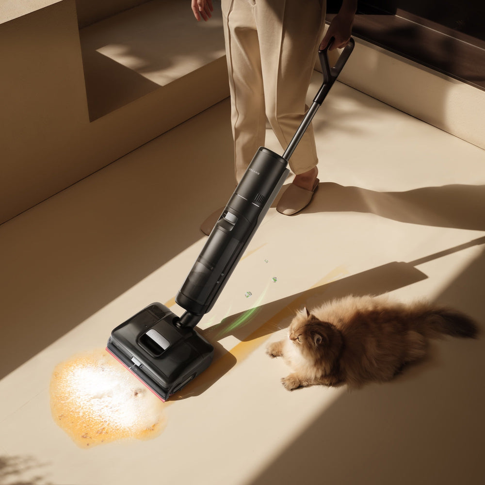 Dreame H15 Pro FoamWash je napreden brezžični čistilnik, zasnovan za temeljito in hkrati praktično čiščenje trdih tal v sodobnem gospodinjstvu. Združuje sesanje, pomivanje in aktivno penasto čiščenje v enem samem postopku, kar pomeni, da tla očisti v enem prehodu, brez potrebe po dodatnem pomivanju ali brisanju. Tehnologija FoamWash omogoča nanos fine, enakomerno razporejene pene, ki se bolje oprime površine tal in učinkoviteje razgradi umazanijo kot klasično mokro pomivanje.